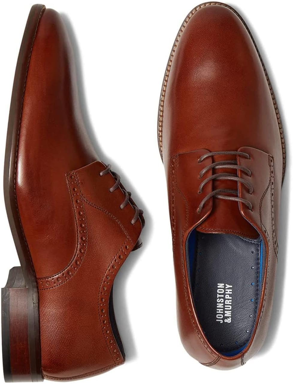 The Johnston & Murphy Stockton Plain Toe is a perfect formal wear suitable for parties as well as business meetings. With a polished finish and classic Oxford styling, these fine leather dress shoes are the perfect complement to your favorite dress wear.